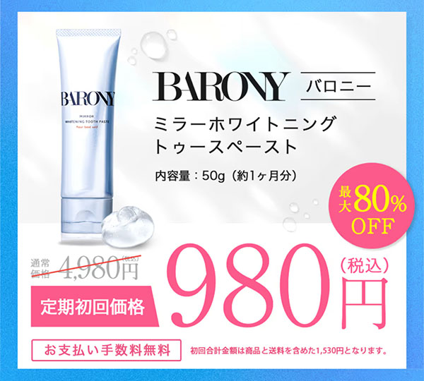 バロニーは殺菌・抗炎症・ホワイトニングに特化した歯磨きジェルです。