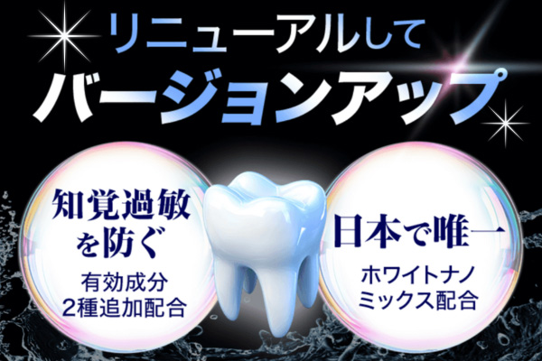 リニューアルで知覚過敏予防の効能を追加した上、歯茎ケアや虫歯予防なども一緒にできるのでホワイトニングしながら健康的な口内環境を目指せるのが嬉しいですね!
